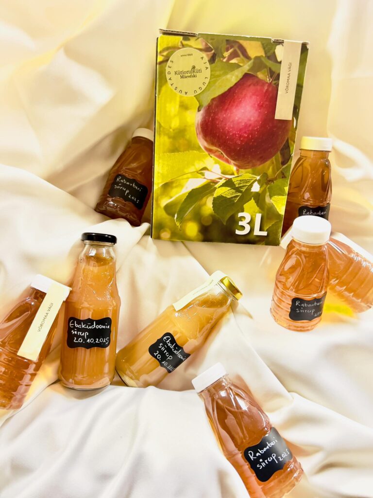 Õunamahla kõrvale on sel aastal lisandunud veel imemaitsev rabarberisiirup, tummine viinamarjasiirup ja põhjamaa sidruni- ebaküdoonia siirup. Ebaküdoonia ja rabarber on meie MTÜ Veskiveere liikmete koduaedadest, Võrumaalt. Ikka “Võromaa vägi” ja süämega tettü! Nii puhas, nii naturaalne! Meie kuninganna koos printsessidega on saadaval Viimsi Taluturul laupäeviti kl.10:00-14:00.